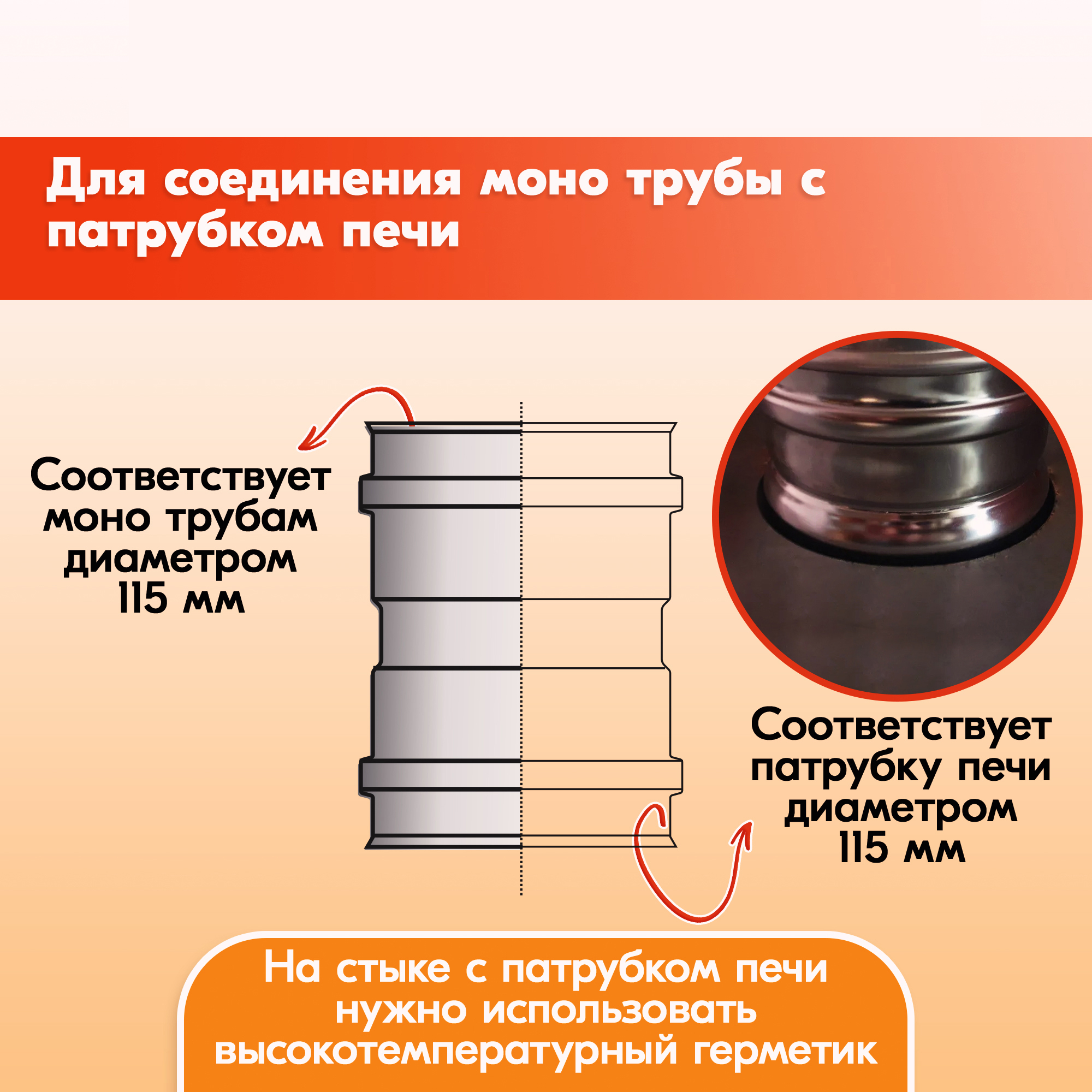 Адаптер дымохода Моно М-М 430-0.8 D115, переходник для печной трубы, адаптер котла из нержавейки