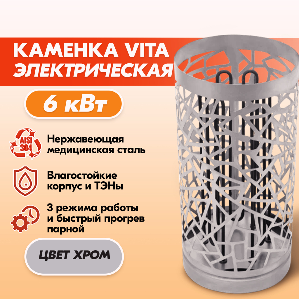 Электрокаменка VITA 6 кВт нерж. в Южно-Сахалинске | Доставка по России