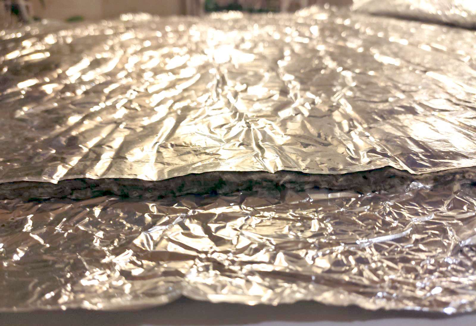 Представляет собой слой холста из базальтовых супертонких волокон, без связующего, кашированный обкладочным материалом из алюминиевой фольги с одной стороны.