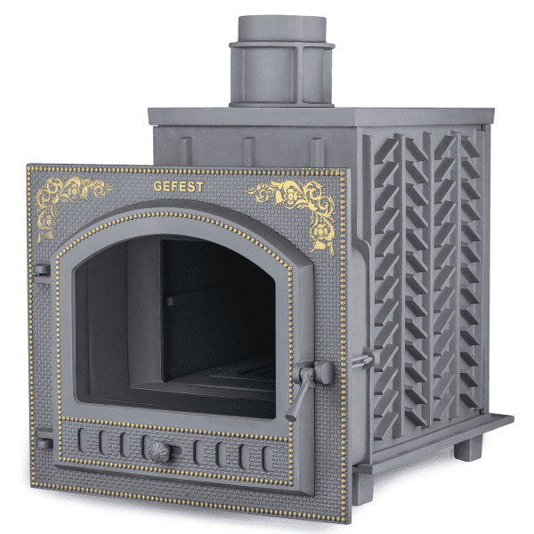 ПБ-02П-ЗК - печь с усиленной каменкой большей массы, с единым углублением внутрь топки для дополнительной укладки чугунного заряда. Теплосъемные шипы, со стороны горения пламени, в разы увеличивают площадь соприкосновения огня с каменкой и ускоряют передачу тепла, а также способствуют лучшему дожигу смешивая потоки пламени и воздуха поступаемого из воздушника. Эти усовершенствования значительно повышают мощность парообразования печи и выдают большее количество пара при непрерывной подаче воды. Каменка печей Гефест-ЗК является незаливаемой.