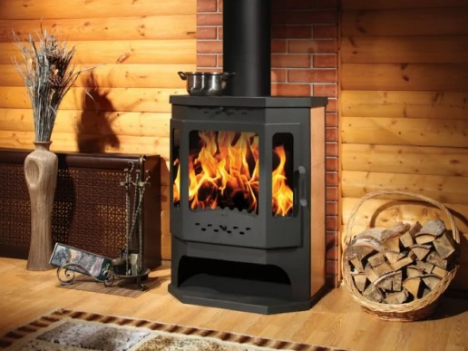 Панорамная дверца печи оснащена термостойким стеклом. Через него можно любоваться огнем и следить за прогоранием дров.