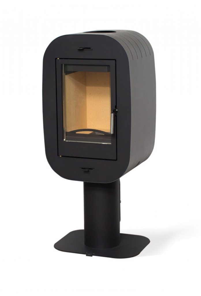 Компактная дизайнерская печь. Может устанавливаться свободно в помещении без примыкания к стене. Оригинальный дизайн делает печь доминантой в небольшом клубном помещении - бильярдная, бар, музыкальная комната. Подходит для обогрева небольшого помещения площадью 30-60 м2. Дверка высотой 310 мм. Размер поленьев 30-32 см вертикально. Подсоединение к дымоходу сверху. Система очистки «чистое стекло».