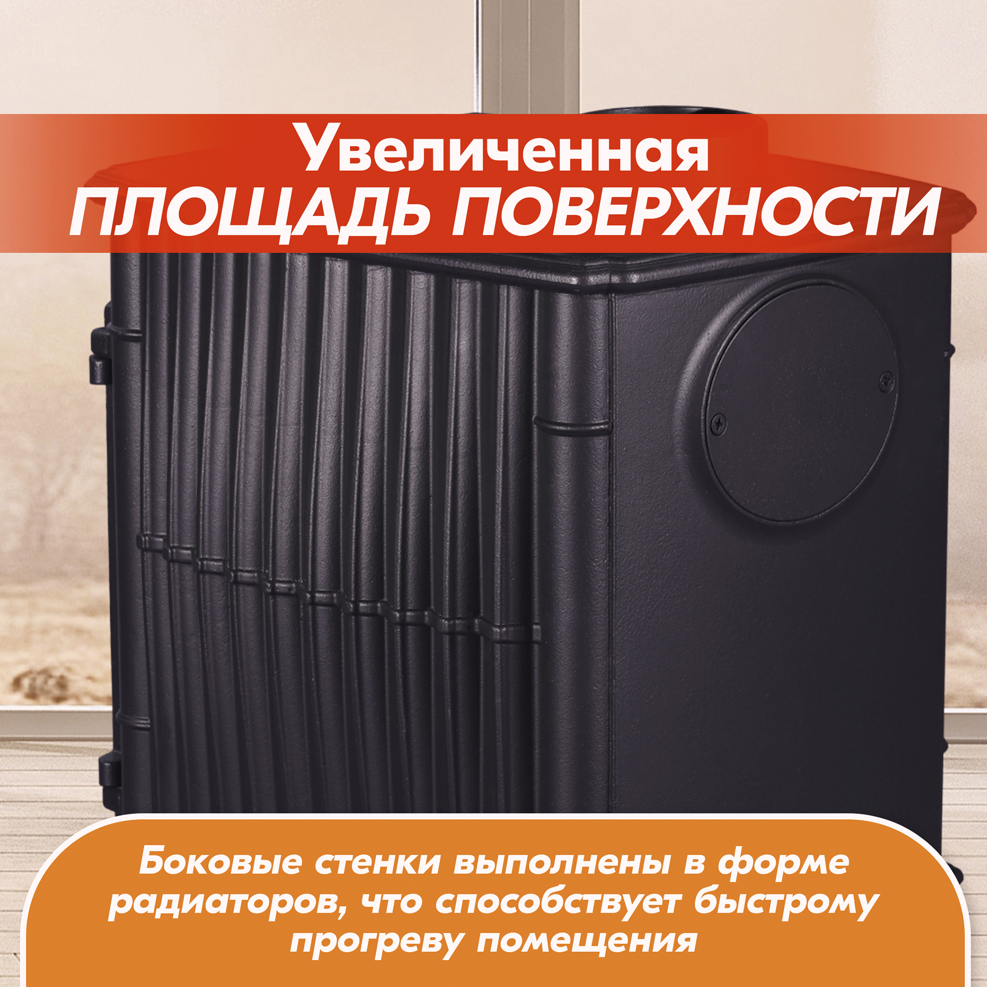Проверенная конструкция демонстрирует отличные показатели в категориях длительность горения, объем отапливаемого помещения, скорость нагрева, экономичность расхода топлива.