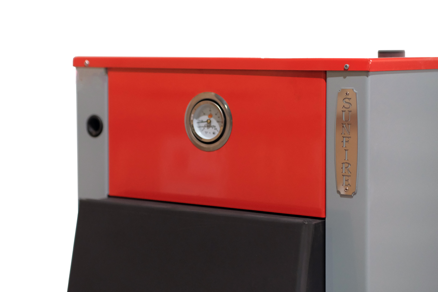 Конструкция котла "Sunfire" 45 кВт предусматривает возможность функционирования на угле и дровах. Корпус котла выполнен из высокопрочной стали с антикоррозионной обработкой.