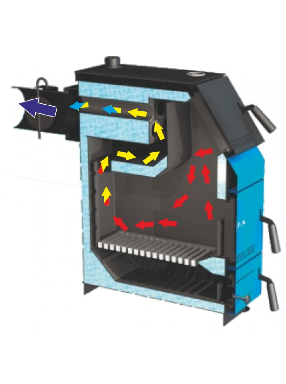 претерпела изменения камера сгорания: дополнительный горизонтально расположенный теплообменник в комбинации со съемной заслонкой делают газоход трехходовым. Таким образом увеличивается площадь теплообмена и повышается эффективность теплоотдачи. Заслонка сделана съемной специально для чистки теплообменника. Кроме того на газоходе расположен прочистной люк, который позволяет легко удалить сажу.