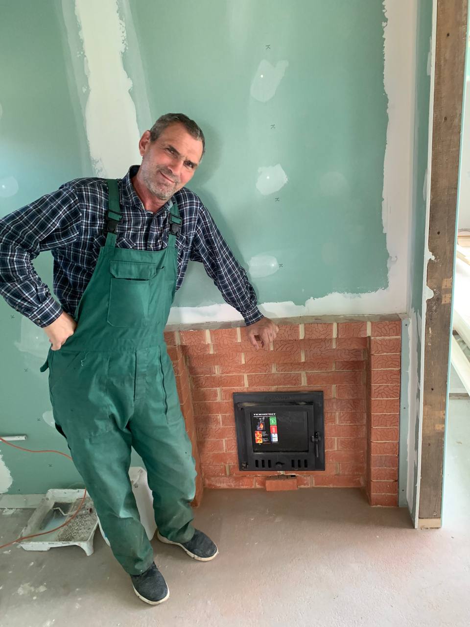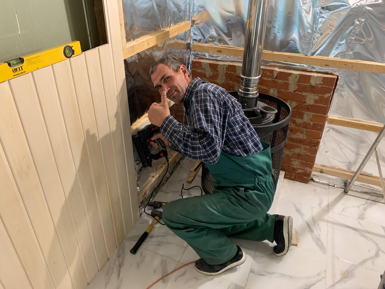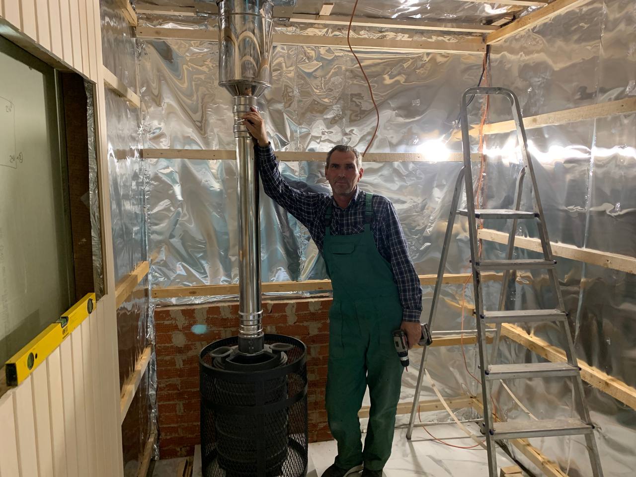 Монтаж банной GFS с установка дымохода, кладка портала