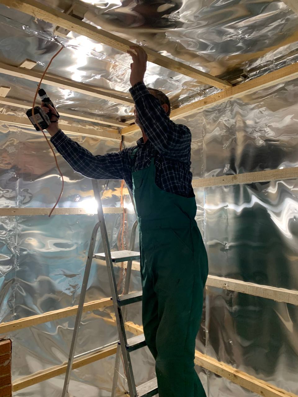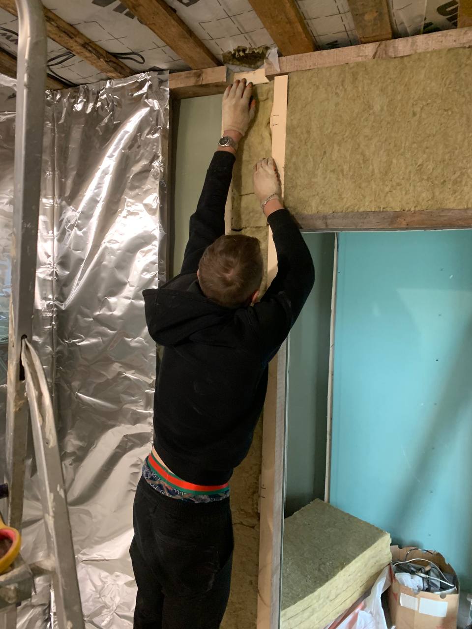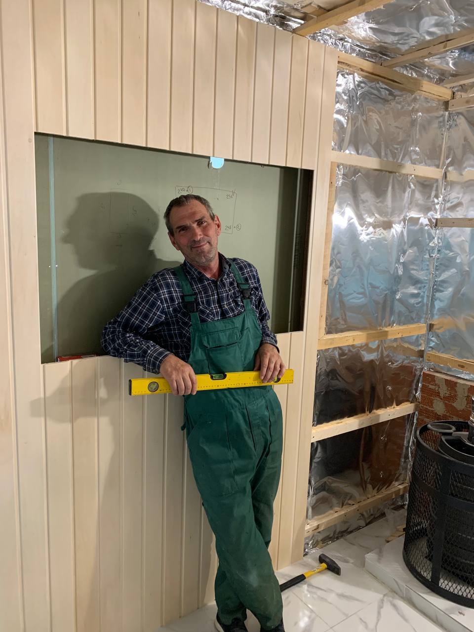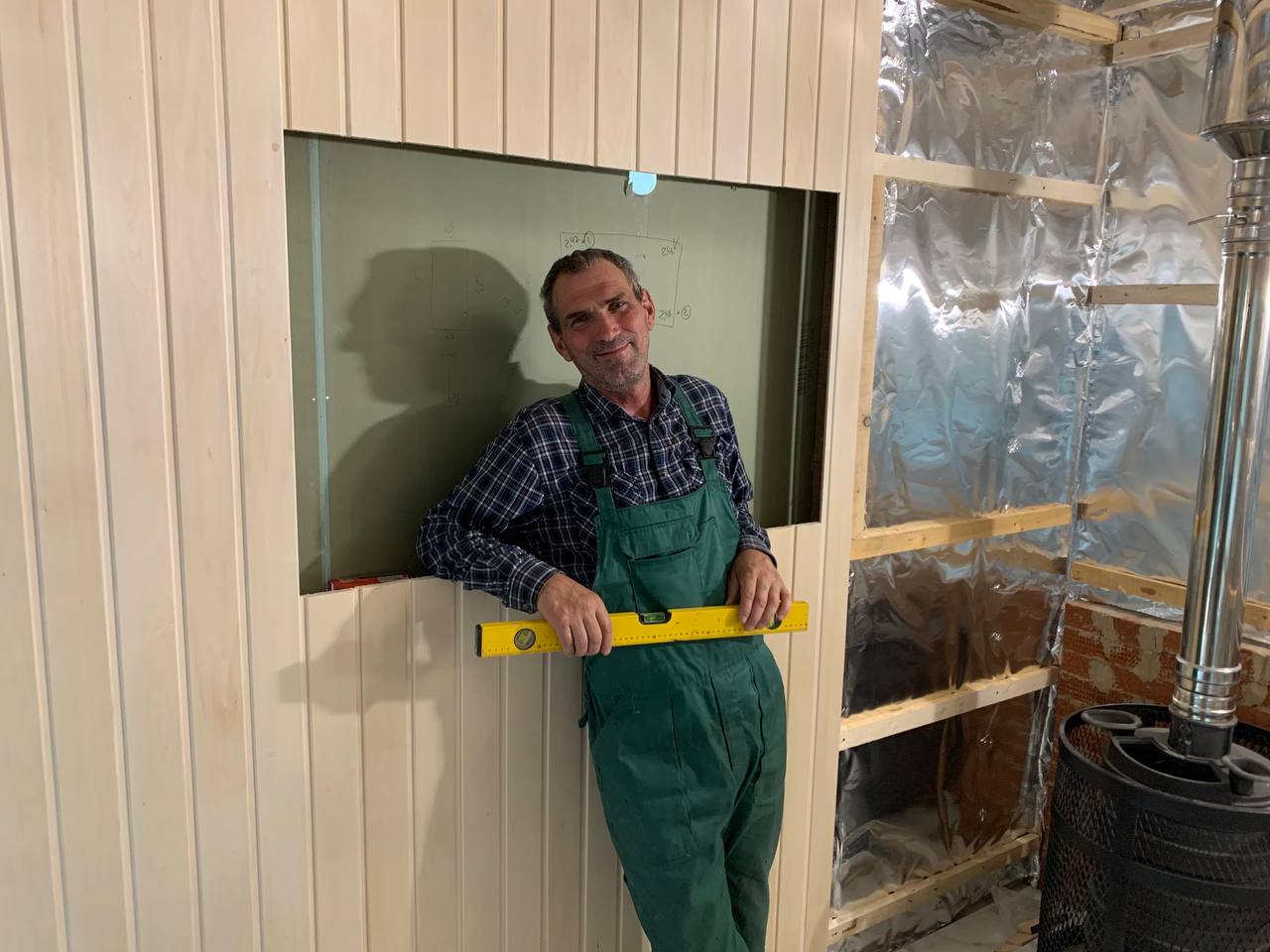 Монтаж банной GFS с установка дымохода, кладка портала