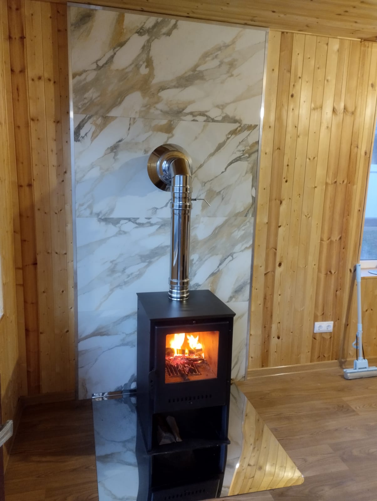 Установка Камина Печь-Камин Варвара "ГАРМОНИЯ 105 (ПЛИТКА)" и дымохода (Комплект)
