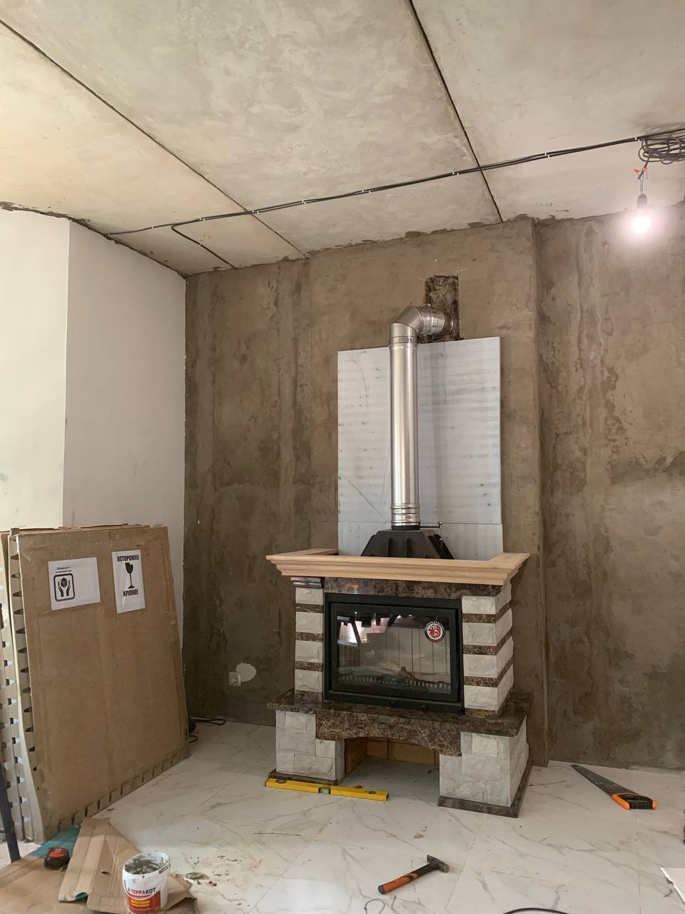 Установка каминой топки Альфа 700 и Облицовки Jabo Marmi Nina